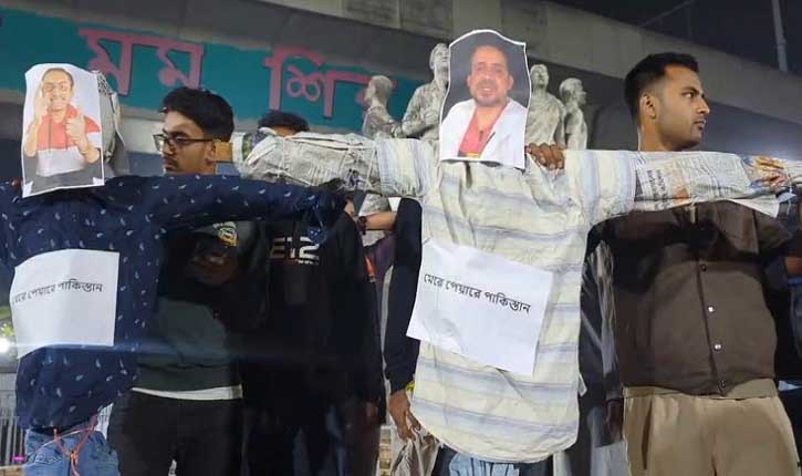 ঢাবিতে ইলিয়াস হোসেন ও পিনাকী ভট্টাচার্যের কুশপুত্তলিকা দাহ