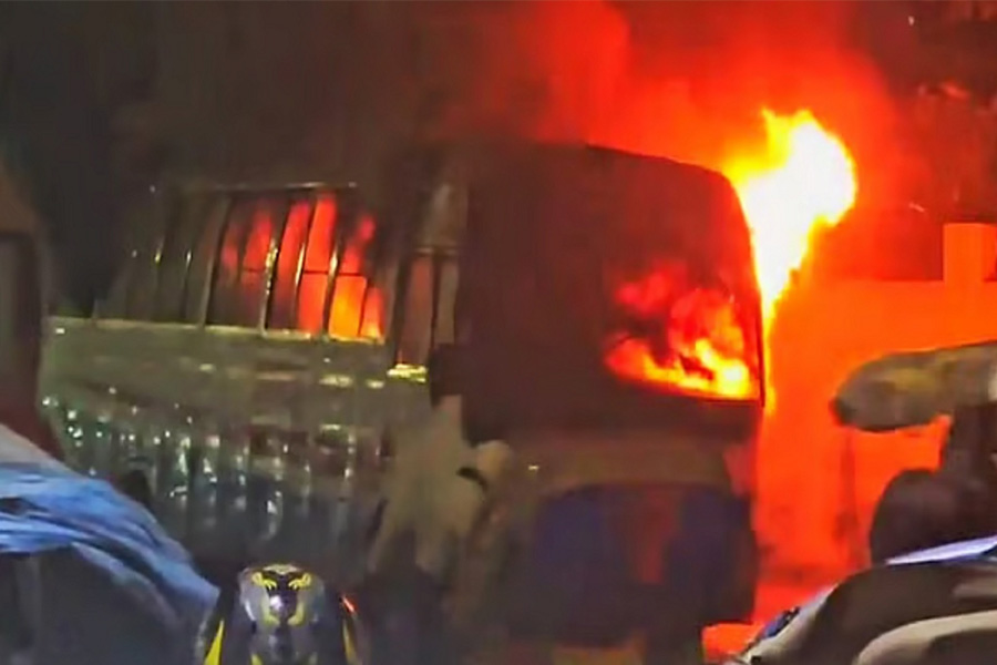 বরিশালে দাঁড়িয়ে থাকা বাসে দুর্বৃত্তের আগুন